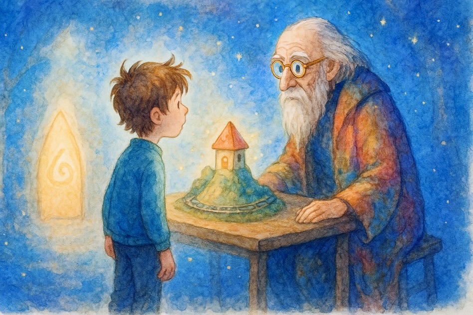 “Ah, good! I wanted to show you this.” The old man pulled away a white cloth. “The Toy Maker’s Model.”