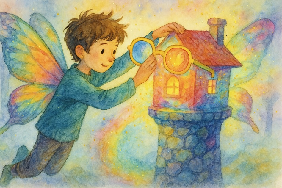 A magical figure waved at him. He wore Opera Glasses with one red lens and one blue lens. The frame shimmered with light.