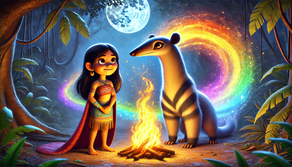 A creature appeared before her, an anteater with a tail that shimmered in every color of the rainbow. Its eyes sparkled with ancient wisdom.