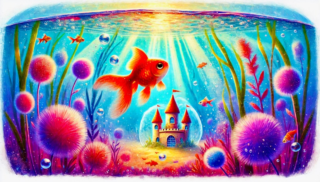 He loved swimming in lazy swirls around his tiny castle, watching the sparkles from his favorite pebble dance across the floor.