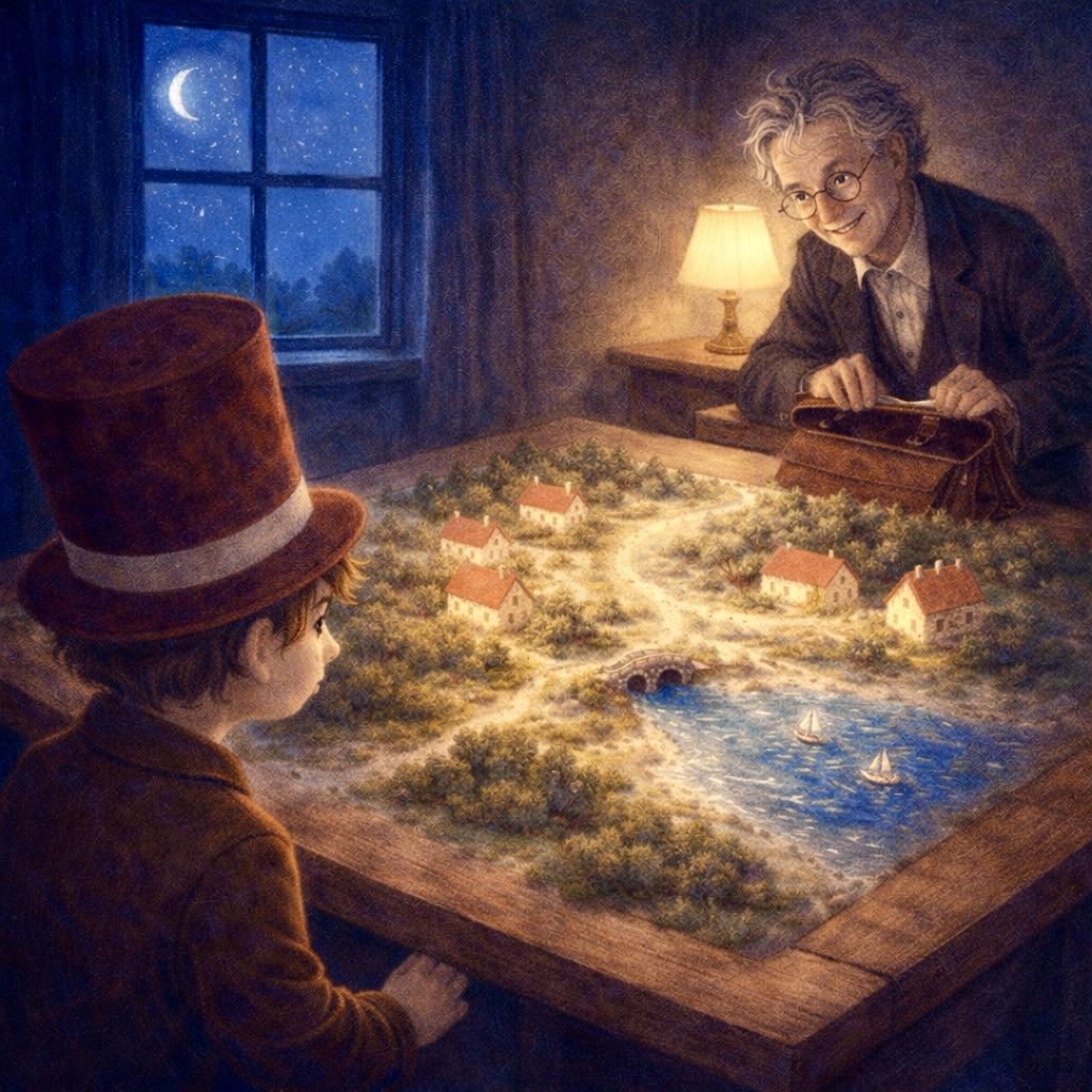 The Abstractionist stood next to the Toy Maker’s model, packing up.