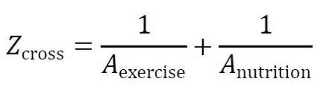 - 𝑍cross represents the cross-impedance between the exercise (blue) and nutrition (red) spaces,