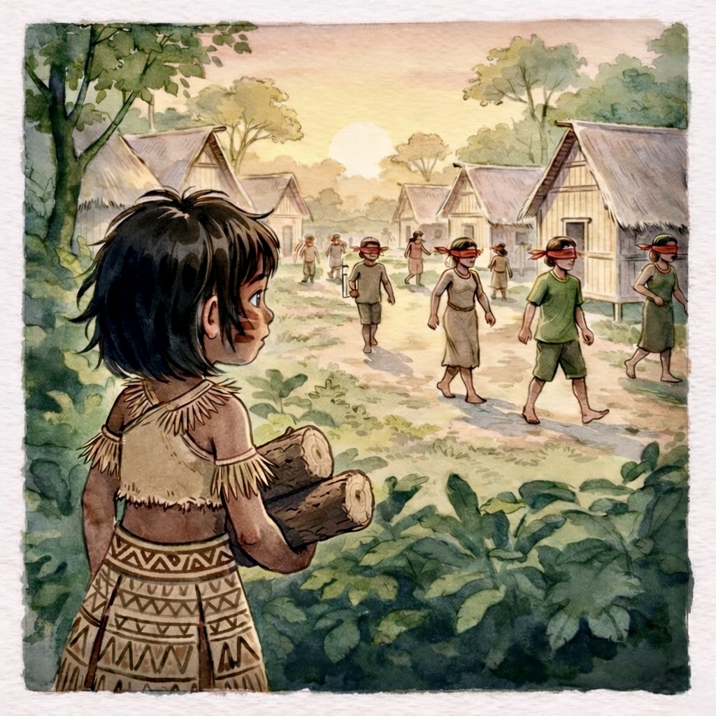 When Luana wears the red cloth, she can’t see anyone else’s.