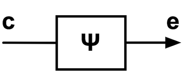 In a Natural Space, enforcement of Rule of Causation (Ψ) turns cause (c) into effect (e):