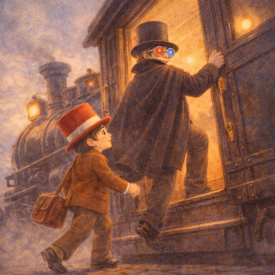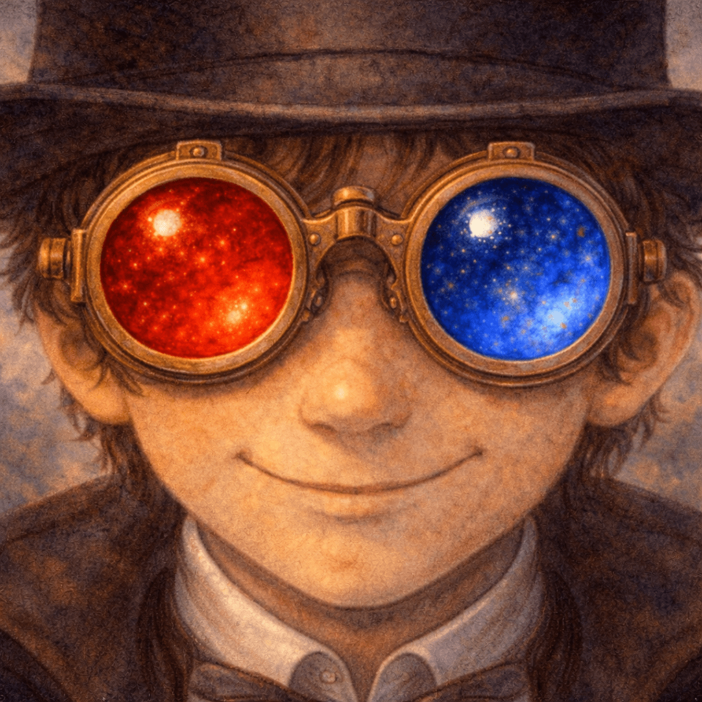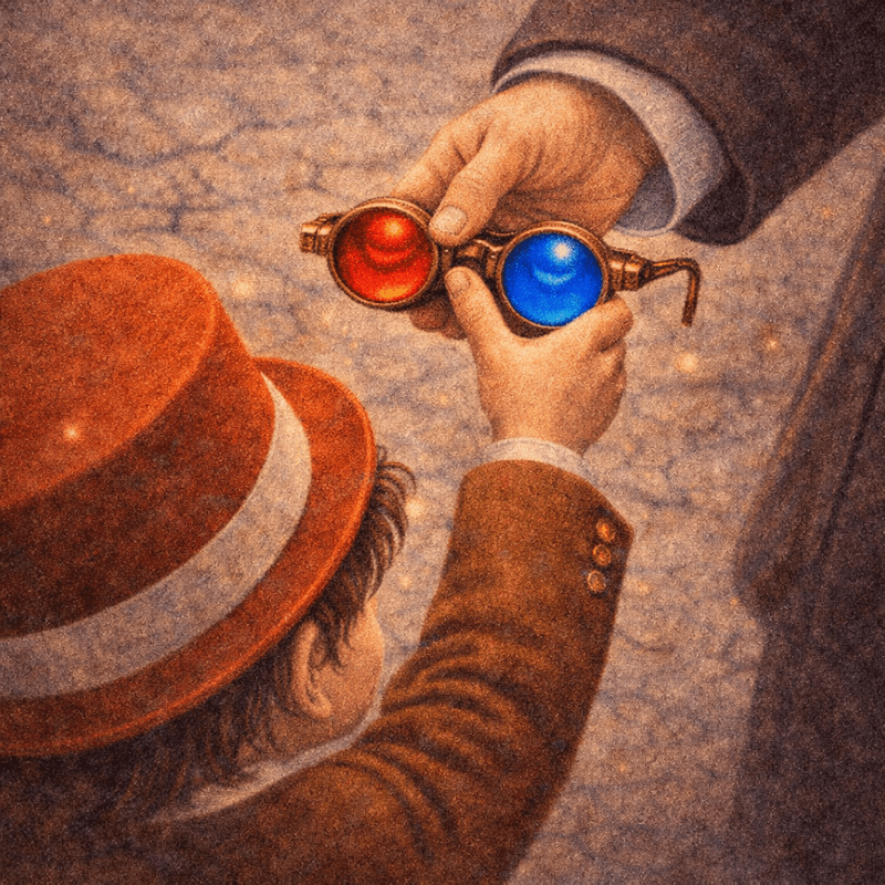 He wore Opera Glasses with one red lens and one blue.